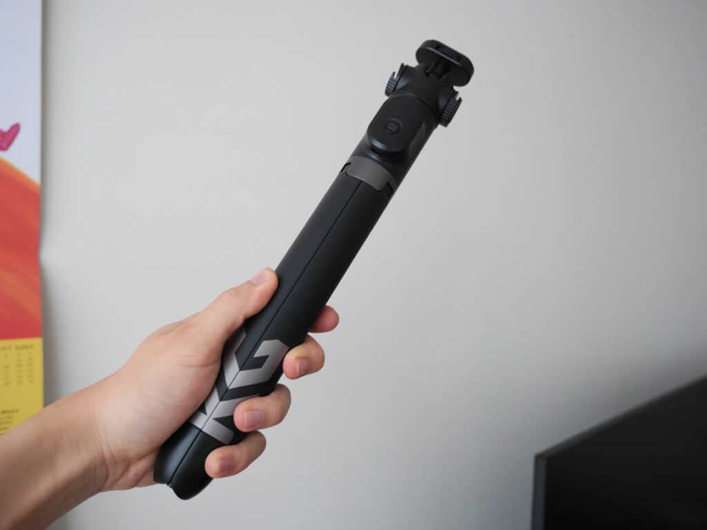 To get the tripod up and running, you have to press the button at the bottom of the tripod to unlock the legs. Once the legs are unlocked, you can then extend the pole. The push button though, is what makes the user experience feel a little clunky to me. There is quite some force required to push, and you also have to hold the handle sleeve while pressing the button, if not all the legs won’t open at once. If there is a version 2 to the tripod, it would be nice to have an easier way to open the tripod.